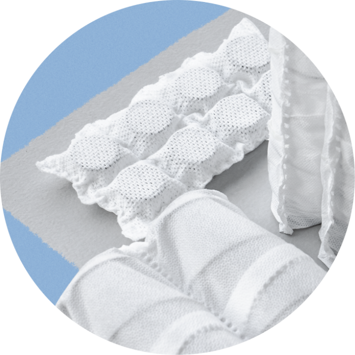 Todas nuestras materias primas cumplen con los más altos estándares de calidad. Disponemos de toda una gran variedad de materiasles, más de siete tipos de muelles ensacados y espumas HR.